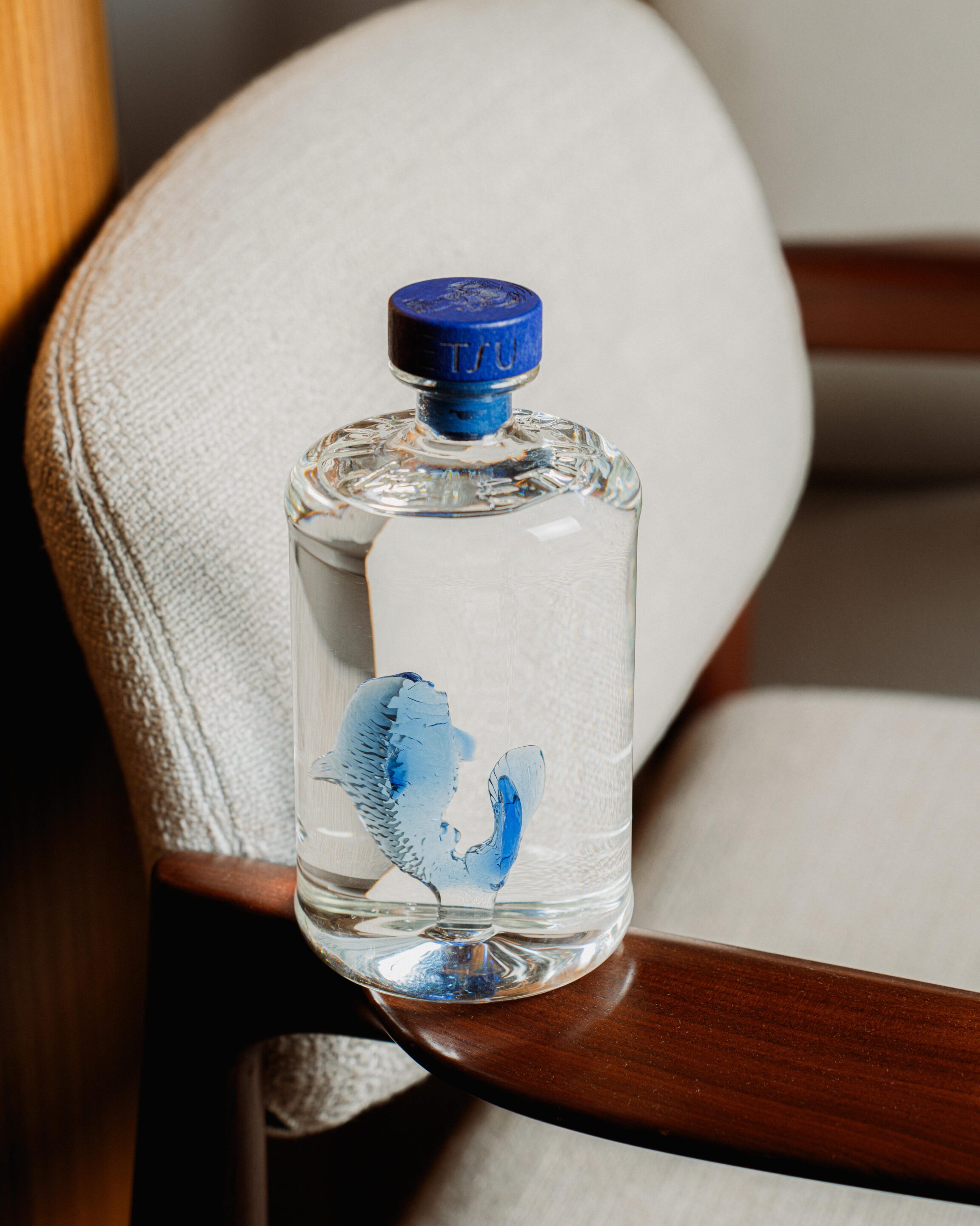 Resting at the base of each bottle is a hand-blown glass koi, captured in a deep ocean blue. Not ornament but talisman, the koi speaks to perseverance, equilibrium, and beauty in motion. It echoes the quiet patience of the sea and the precision of the artisan, two discreet forces that have shaped ETSU Gin from the beginning.